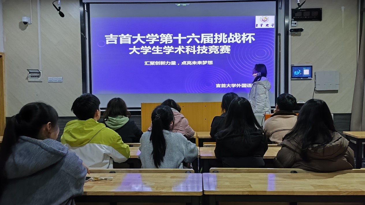 本网讯(通讯员 陈慧 李安妮 赵艺 奉婷)为深入贯彻科教兴国、人才强国与创新驱动发展战略,助力学校高素质创新型人才的培养,吉首大学外国语学院成功举办了第十六届“挑战杯”大学生课外学术科技作品竞赛。此次竞赛吸引了众多学生积极参与,为学生们搭建了展现创新精神与实践能力的广阔平台。