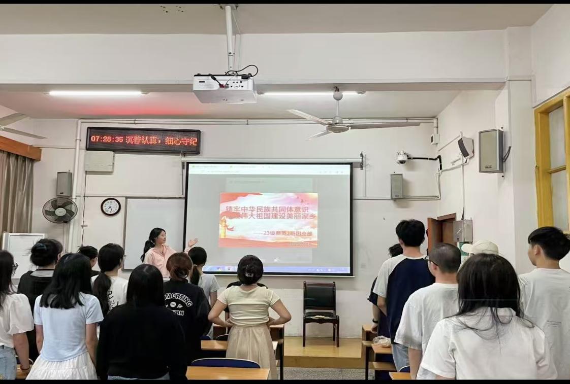 2023 级商务英语二班团支部是一个由 17 名团员、9 名入党积极分子组成的先进集体。自成立以来,支部始终以习近平新时代中国特色社会主义思想为指导,深入贯彻落实共青团中央及学院团委各项工作要求,紧紧围绕 “思想引领、组织建设、实践育人” 三大核心任务,全力打造 “有理想、敢担当、能吃苦、肯奋斗” 的新时代青年集体,在思想建设、团建活动、社会实践等方面取得了显著成效。