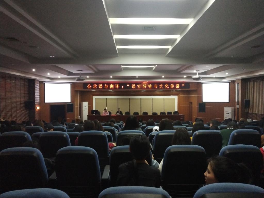本网讯(通讯员 李干 奉洁 孙欣然)4月12日下午,吉首大学界顶论坛第三十三场“公示语与翻译:语言转喻与文化传播”学术报告会在逸夫楼多功能报告厅举行。外国语学院院长汤敬安教授主持学术报告会,新疆大学外国语学院谢旭升教授主讲。