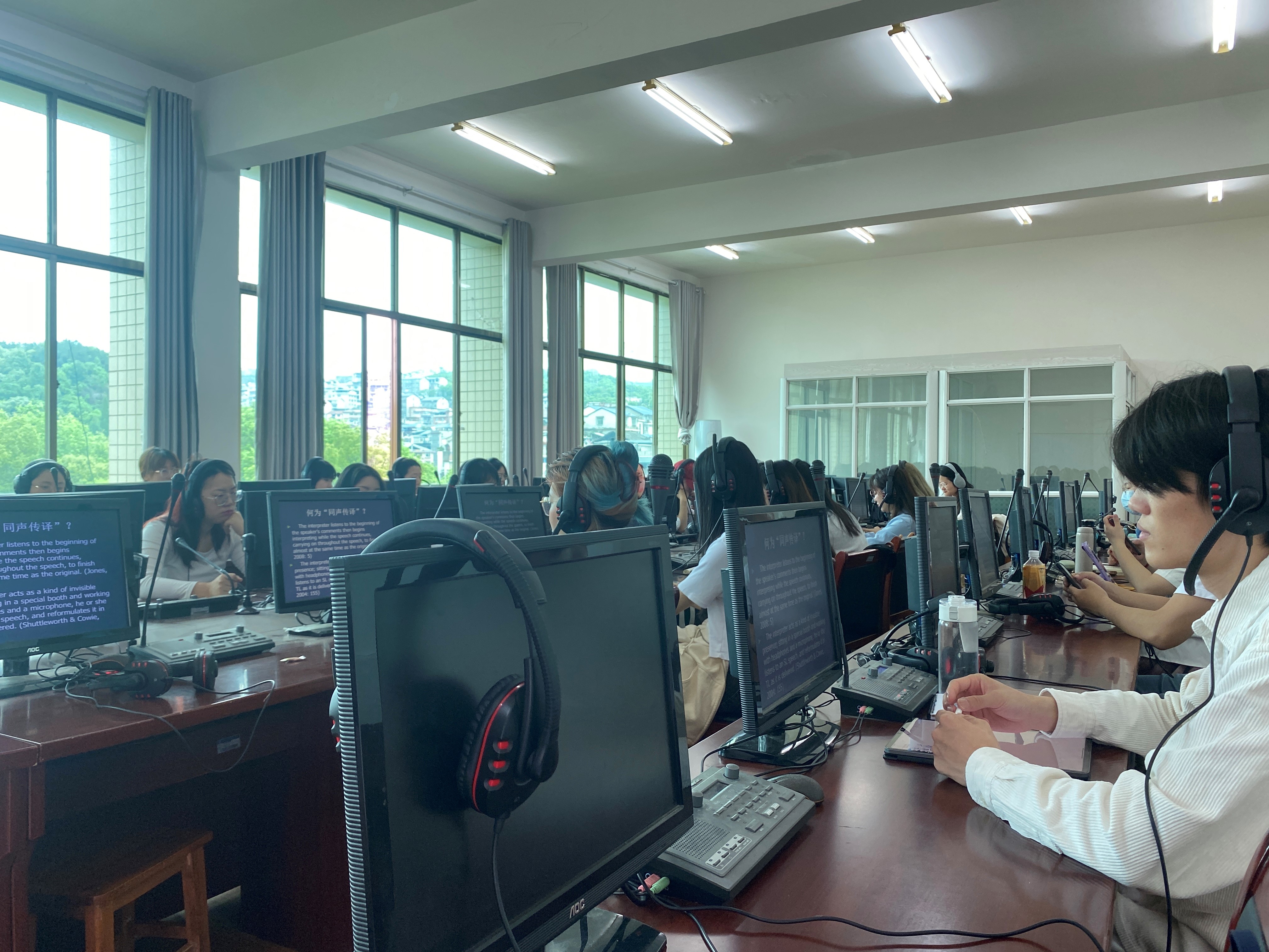 5月5日,詹成教授以同声传译技巧与实训为主题的MTI口译工作坊在逸夫楼3608同声传译教室顺利举办。外国语院长刘汝荣、口译教师黄静莅临现场学习,外国语学院副院长唐小田主持本场工作坊,2022级全体翻译硕士研究生及2020、2021级在校研究生参加。
