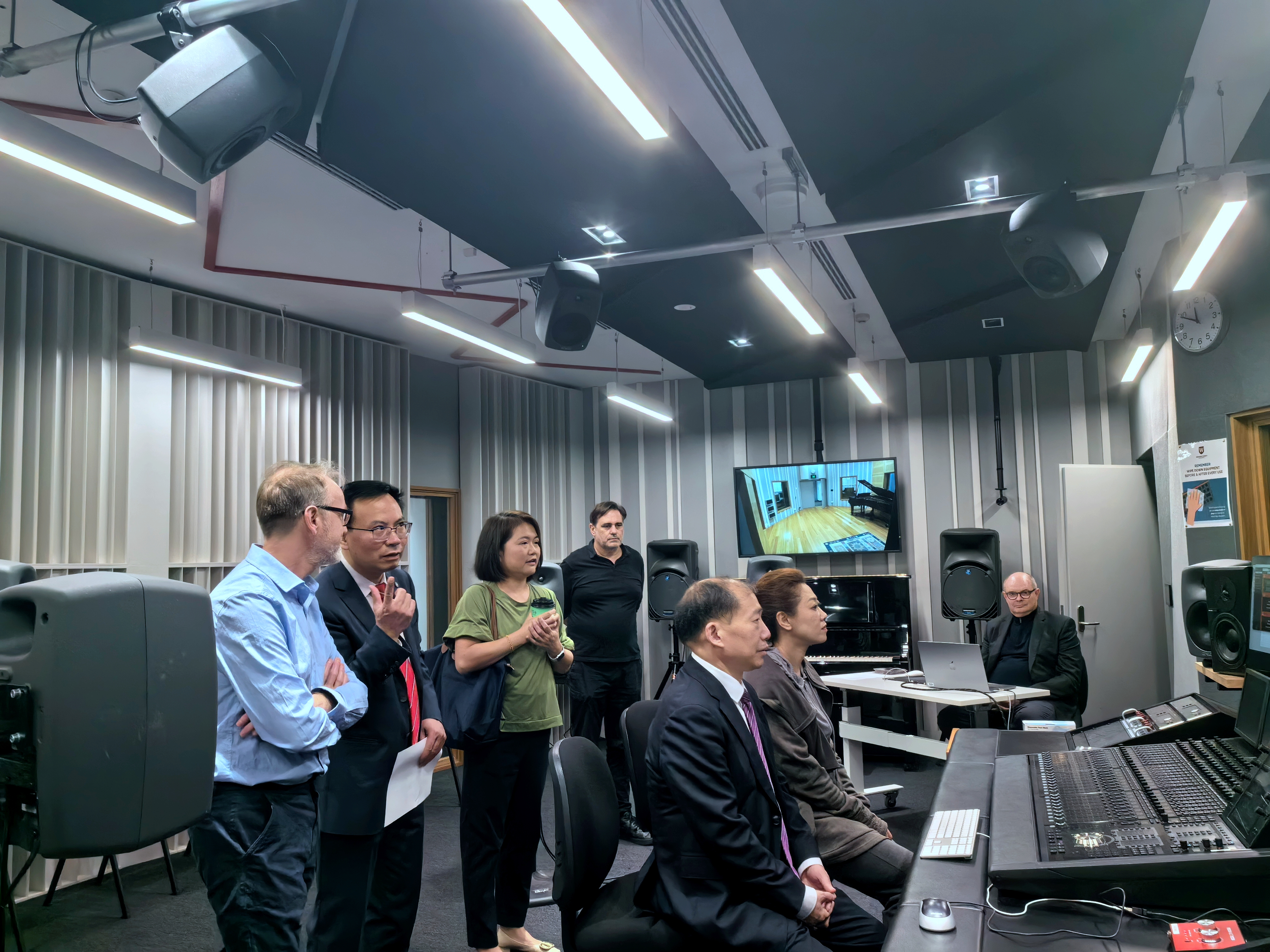 4月17日上午,廖志坤一行来到西悉尼大学金斯福德校区,考察该校音乐治疗专业的课堂现场教学和音乐实验室,就音乐领域相关专业教师访学及学生攻读学位等合作进行了讨论。